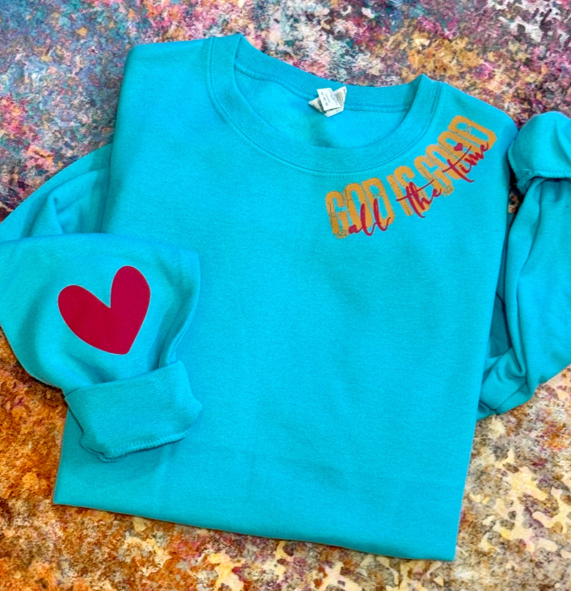 Snuggle up in this "God Is Good All The Time" sweatshirt, perfect for cozy days or spontaneous dance-offs in your living room (no judgment here). It’s not just a shirt; it’s a hug from the universe reminding you to keep the faith and rock the vibes! Wear it, believe it, live it!